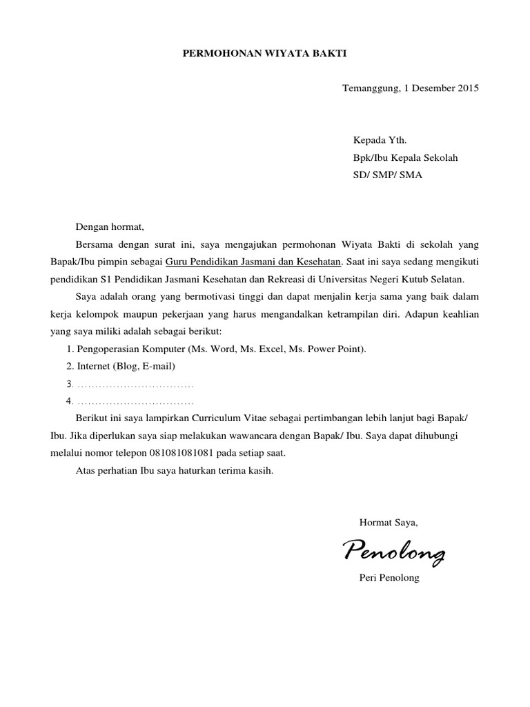 Dengan hormat, berdasarkan informasi yang saya dapatkan dari situs sdn negeri 02 sambiroto pada tanggal 14 juli 2020, bahwa sekolah membutuhkan guru. Pembuatan surat lamaran kerja yang baik dan benar bisa meningkatkan kualitas anda dihadapan hrd. Walaupun surat ini sama sama dikeluarkan oleh perusahaan tapi isi dari surat keterangan magang ini berbeda dari surat pengalaman kerja. Maka dari itu, pada kesempatan kali ini saya akan membagikan beberapa contoh surat lamaran kerja format doc yang. Lamaran pekerjaan kepada yth kepala man 1 cirebon di tempat dengan hormat yang bertanda tangan di bawah ini, saya: Contoh surat lamaran pppk guru, cpns dan pppk non guru terbaru doc pada artikel ini sudah dibuat karena sesuai dengan format dan struktur penulisan lamaran pppk guru, cpns dan pppk non guru terbaru yang di lansir dari sscasn.bkn.go.id dan sebelum lanjut ke contoh surat lamaran pppk guru, cpns dan pppk non guru, ada baiknya lengkapi juga tips dan kriteria untuk membuat surat lamaran kerja yang. Contoh surat tawaran kerja doc it also will feature a picture of a sort that may be seen in the gallery of contoh surat tawaran kerja doc. Maybe you would like to learn more about one of these? Cara membuat surat lamaran kerja dengan contoh doc pdf cv These are so many great picture list that may become your inspiration and informational purpose of contoh surat lamaran kerja cpns doc design ideas for your own collections. Silahkan digunakan secara bijak, ingat jangan meniru sepenuhnya surat lamaran di atas, silahkan berkreasi kembali sesuai dengan kreatifitas anda. 23+ contoh surat lamaran kerja guru tahfidz doc + pdf yang baik dan benar tulislah surat lamaran dengan baik agar mudah dibaca dan di teliti dengan mudah. The modifmobilz.com team also supplies the picture in high quality resolution (hd quality) that may be downloaded simply by way.